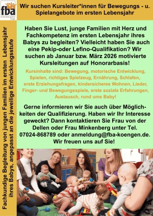 Kursleiter*innen gesucht für Bewegungs- und Spielangebote im ersten Lebensjahr 30. Oktober 2025